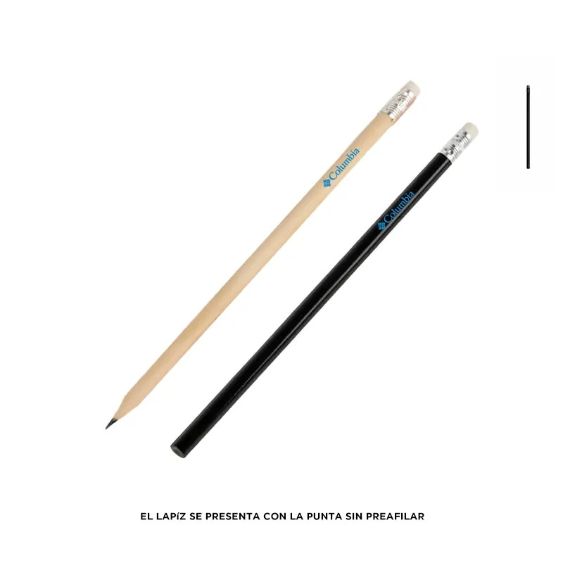 Lápiz grafito con goma. Realizado en madera con detalle de aluminio en reborde de goma. Material de la goma: Caucho. Punta sin preafilar. Medidas: 189 mm x Diámetro 0,8 mm. Mina: 2mm.