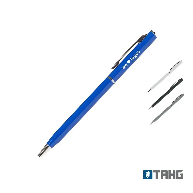 Lápiz de metal. Diseño elegante. Con clip. Apertura medio giro. Tinta azul