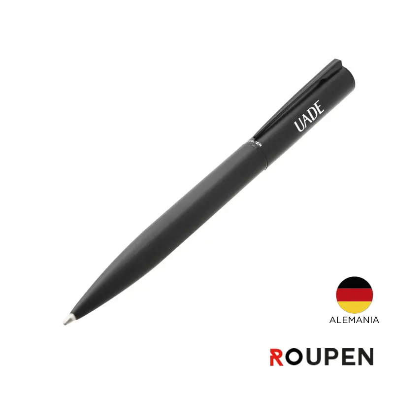 Lapiz de acero con detalles en latón, acabado negro mate. Dimensiones: 13,6 x 1,25 cm. Cuenta con tinta azul.